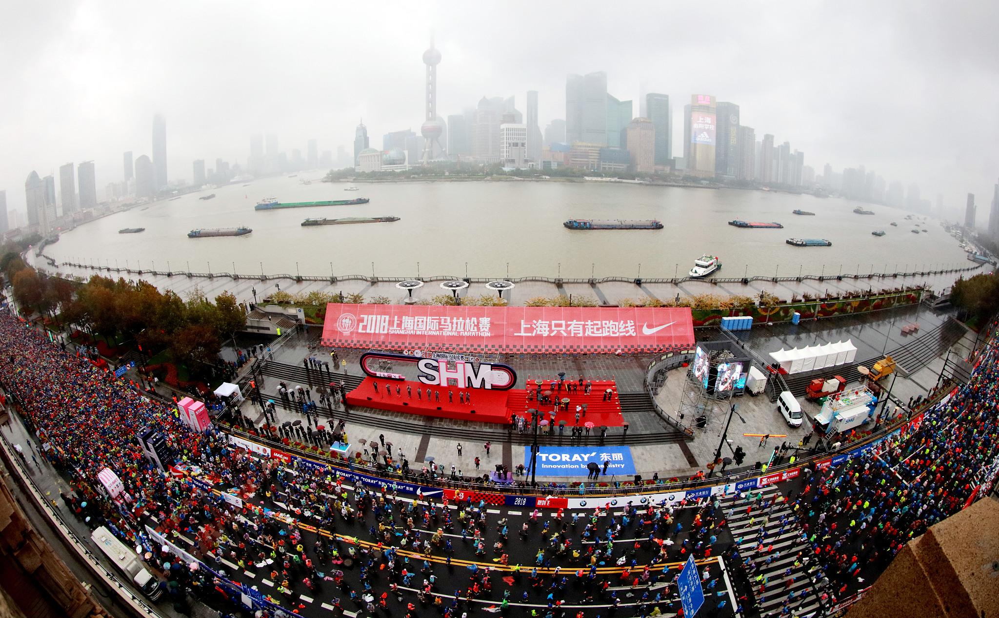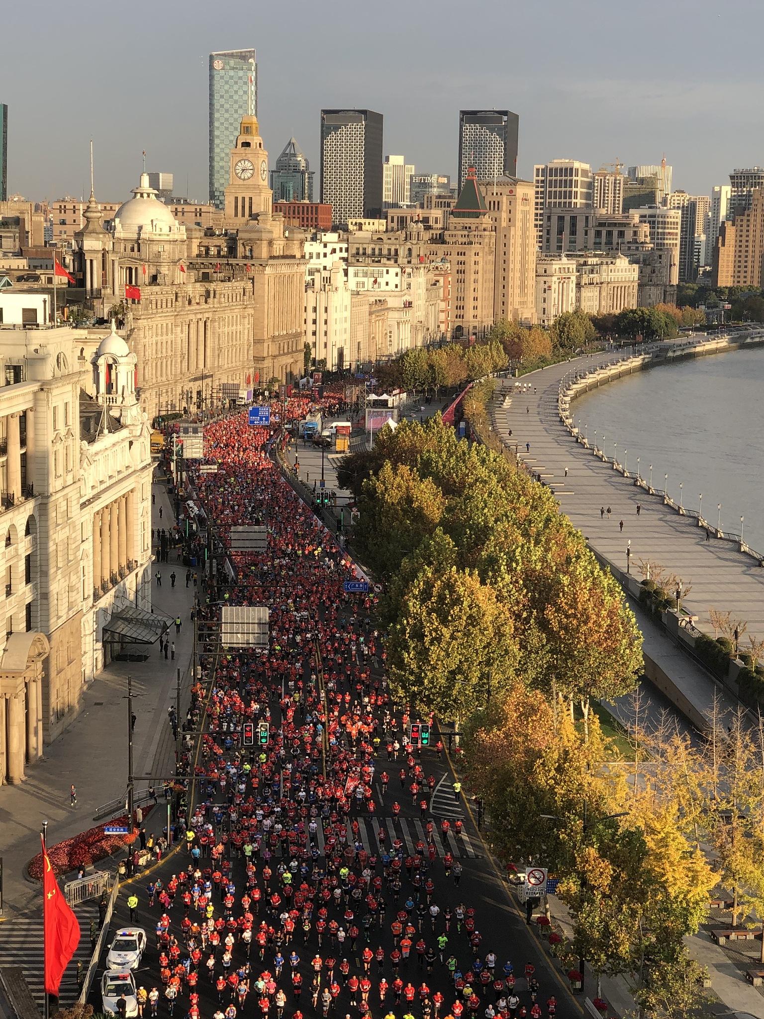 上海马拉松赛现场。人民视觉 图
