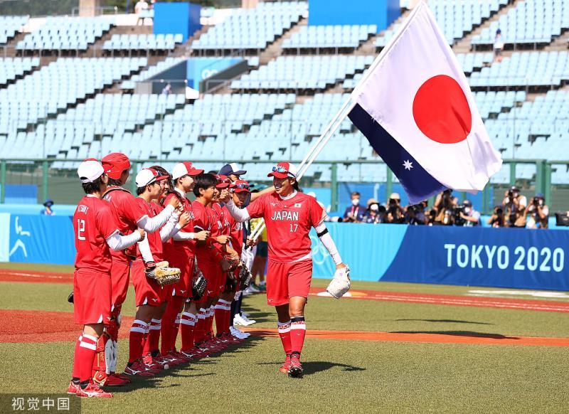 7月21日上午,福岛县营吾妻球场,东京奥运会女子垒球日本与澳大利亚的比赛。视觉中国供图