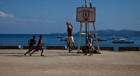 ▶非得分队的一名队员在场上球篮下方将球传或运至圆弧线以外的任意位置继续比赛