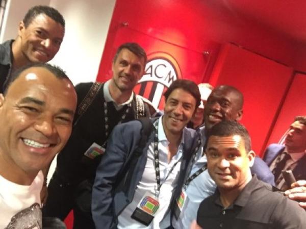 传奇米兰再度相遇。左起:迪达、卡福、马尔蒂尼、鲁伊·科斯塔、西多夫、塞尔吉尼奥。