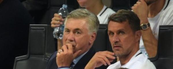 教练席上的安切洛蒂和马尔蒂尼。