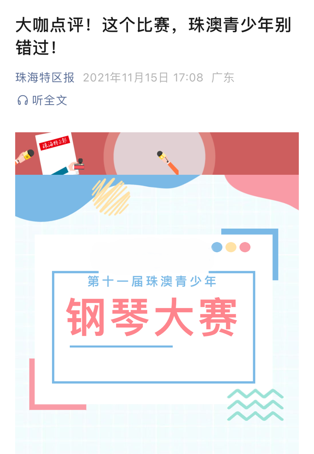 珠海特区报微信公众号、珠海特区报视频号、观海融媒APP等平台全程跟踪报道,从初赛、决赛、音乐会及颁奖典礼,全程精彩都不容错过。通过官方媒体矩阵传播,让更多人了解并关注本次钢琴大赛,为选手搭建起展示自我、扩大影响力的舞台。