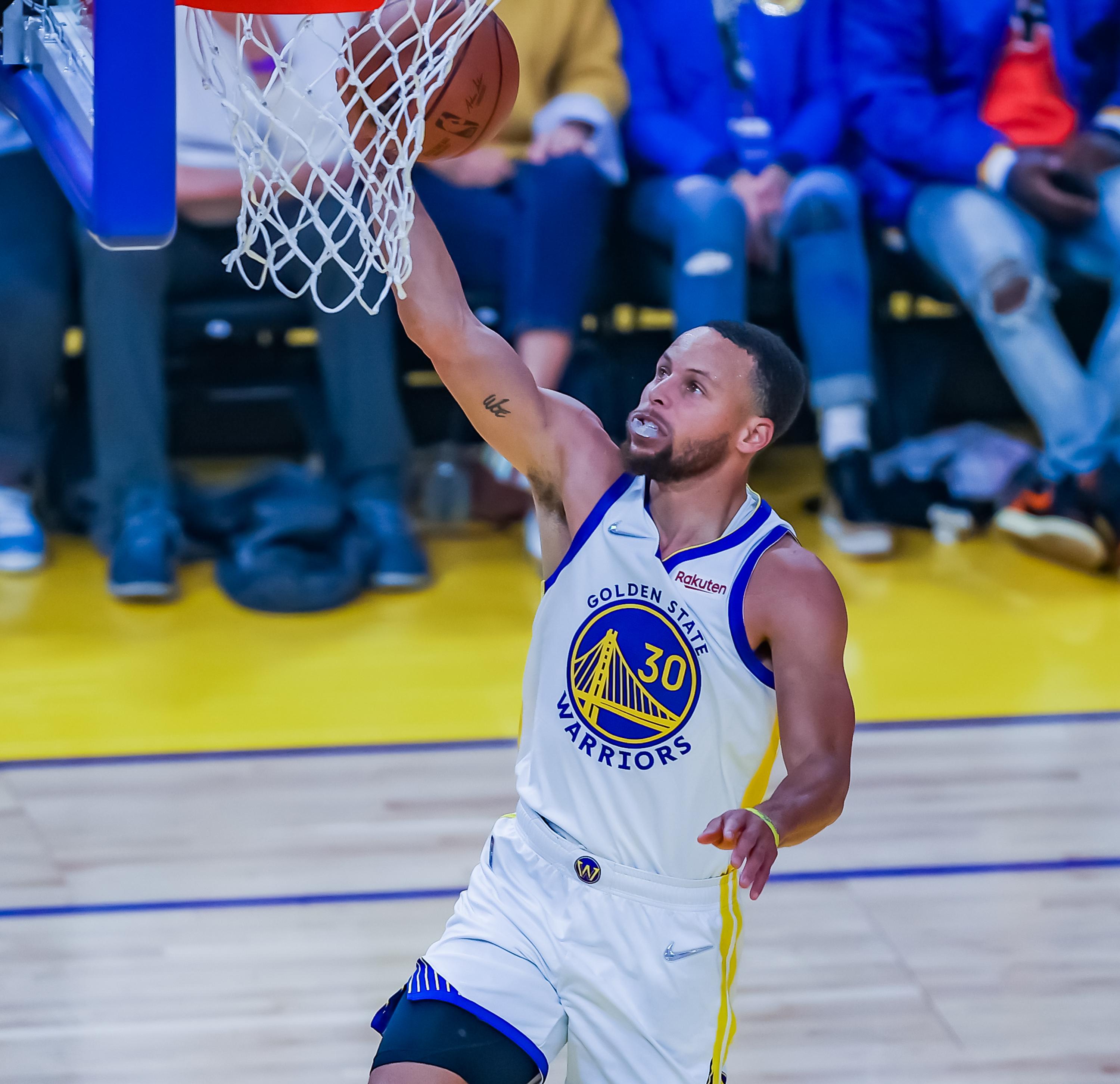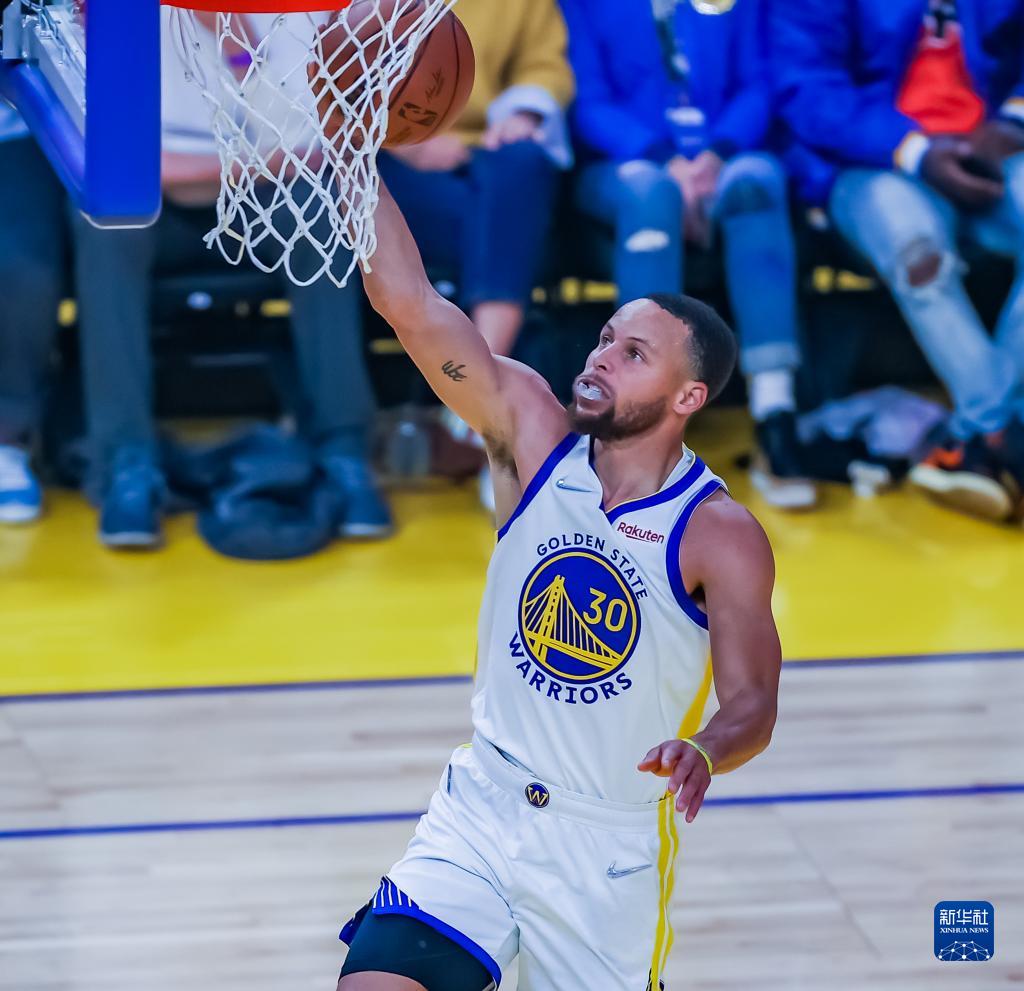 5月9日,勇士队球员库里在比赛中上篮。 新华社发(董旭东摄)
