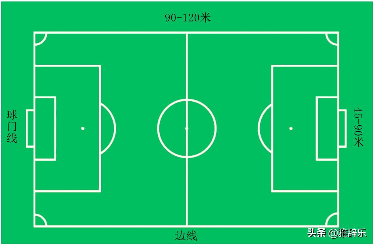 比赛场地必须是长方形,长度90—120米,宽度45—90米,球门高2.44米 ,宽7.32米,足球用皮革或其他适料制成,圆周不长于70厘米不短于68厘米。国际足联规定的标准足球场场地大小为105米*68米,面积为7140平方米。足球场就是进行足球比赛的场地。足球场的基本条件是一块长方形的平地,可以是草地、人造草、胶地甚至混凝土地,较简陋的足球场可能只有两边龙门及几条白线,设备较佳的足球场可能附设有灯光、看台、更衣室等设施。供职业足球联赛或国家队进行比赛的足球场,可在四面设有广告板,看台更可能容纳数以万计的观众。有些足球场外围可能设有田径跑道。