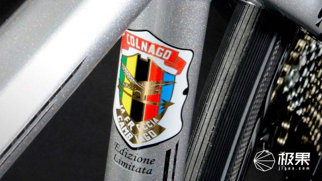 在车的头管和立管上,都绘制有 1954 年 Colnag 创建时的第一个鹰箭图案 Logo,图标中印着 Cambiago 代表着 Colnago 的诞生地,可以说是纪念意义满满。