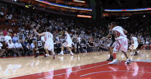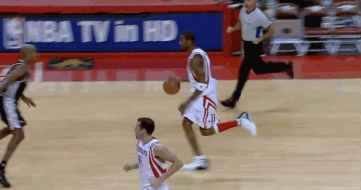 麦迪接到队友在左侧边线的发球,T-Mac再次来到右侧弧顶,迎着防守飚中三分,此时火箭仅以78-80落后。比赛还剩下11.2秒,布伦特-巴里右侧边线发球,德文-布朗带球往里走时出现失误,麦迪断球之后一直推进到了前场,于左侧面对巴里和帕克起身出手三分,球进了!火箭以81-80反超!帕克最后1.7秒的三分不中,火箭主场艰难逆转获胜。