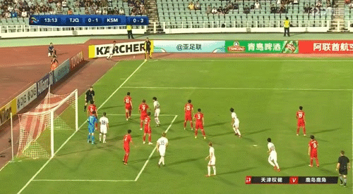 第21分钟,铃木优磨左路突破了刘奕鸣的防守后小角度射门,张鹭飞身将球扑出。第24分钟,张修维右路传中,权纯泰将皮球击打到禁区前沿,帕托的劲射在门线上被鹿岛后卫解围。