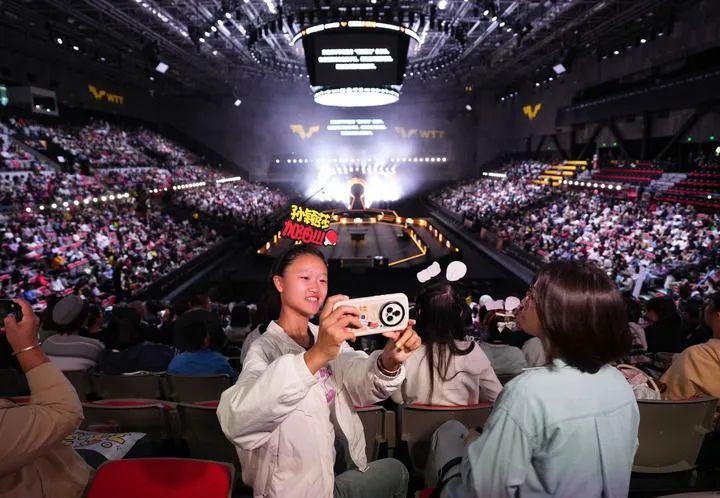 10月3日,观众来到首钢园区观看世界乒乓球职业大联盟(WTT)中国大满贯赛。新华社记者 张晨霖 摄