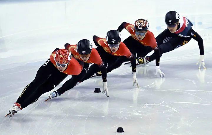 10月3日,朱祎玎、李坤、张柏浩(左一至左三)在比赛中。当日,在2024上海超级杯短道速滑男子1000米A组决赛中,中国选手朱祎玎以1分26秒848的成绩获得冠军,李坤和张柏浩分获亚军和季军。新华社发(陈浩明摄)