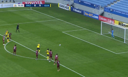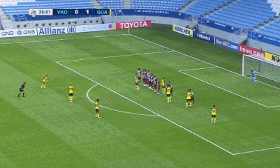 第36分钟,恒大获得位置极佳的任意球机会,艾克森右脚直接打门,皮球直挂死角!恒大将比分扩大为2-0!