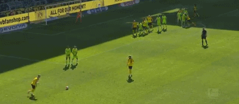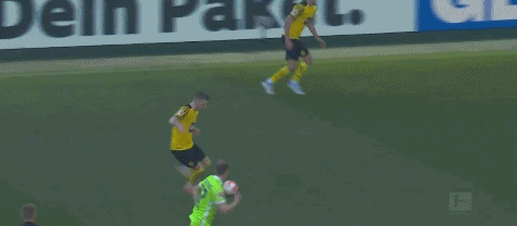 第34分钟,多特再下一城,埃姆雷-詹在前场右侧拿球,他带球来到禁区前,向中路内切后左脚低射,皮球钻入球门左下角,多特4-0狼堡。