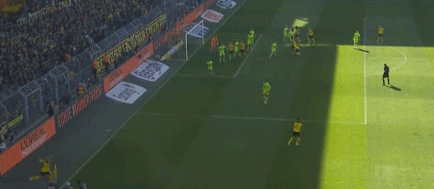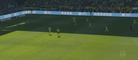第28分钟,多特再入一球,罗伊斯将前场左侧的任意球开入禁区,门前的阿坎吉伸脚一垫将球打进,多特3-0狼堡。