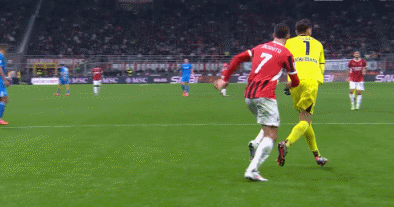 第43分钟,克瓦拉茨赫利亚左路内切,随即右脚攻门轰出世界波,那不勒斯2-0AC米兰。↓