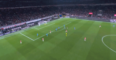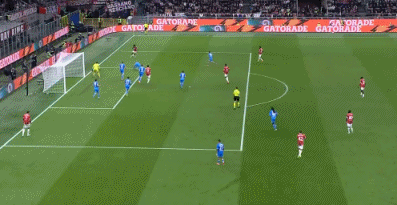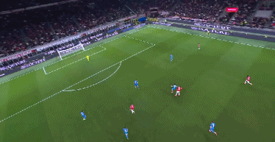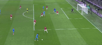 第5分钟,卢卡库接到安古伊萨斜传,扛倒帕夫洛维奇,面对佳夫补防禁区内一脚低射将球打进,那不勒斯1-0AC米兰。↓