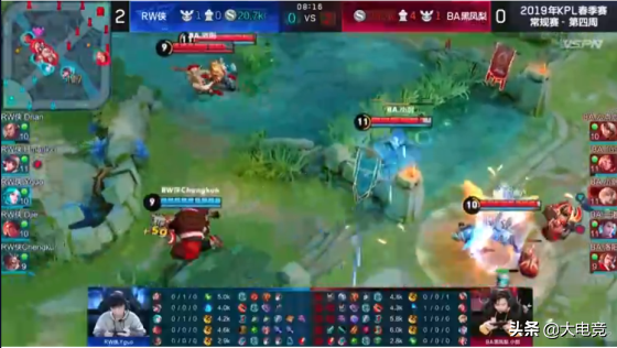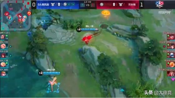 前期,BA主动反蓝,不料RW强势反击,RW貂蝉顺利拿下一血。