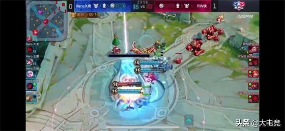 游戏进行到后期,局势很焦灼,双方都有团灭对手的机会,随后RW侠抓住机会,在敌方水晶处开团,主宰进入敌方水晶时,RW辅助果断出击,强行推水晶。