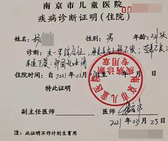 同时,小新也被确诊为皮罗综合征,肺炎和右上肺不张,营养不良,同时还有尿道下裂、卵圆孔未闭。