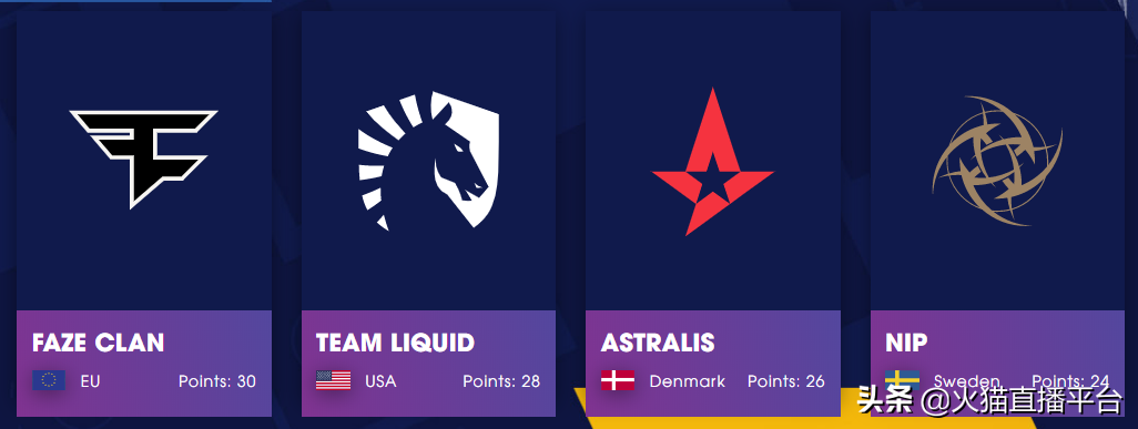虽然本次全球总决赛只有四支战队参赛,但Astralis、Liquid、FaZe、NiP四支战队无一不是拥有巨大号召力的战队,Astralis自不必说,当今丹麦王朝奠基者的实力毋庸置疑;Liquid在今年年中的崛起让世人开始重新关注北美CS:GO职业圈,充满进攻性的激进风格也为其吸引了许多粉丝;FaZe作为CS:GO届的“银河战舰”作用大批拥趸,冷神Coldzera加入后也有重新崛起的迹象;老牌劲旅NiP尽管无法重现当年辉煌,但老将f0rest的老当益壮和新人Plopski的无限潜力还是让人对这支战队充满期待。