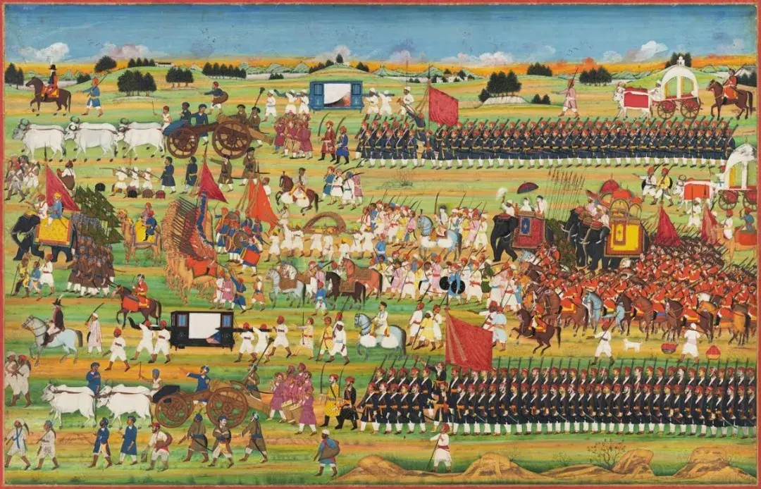 18世纪中期,莫卧儿帝国的衰落让整个印度次大陆又回到了群雄逐鹿时代。 北面是来自阿富汗山区的杜兰尼王朝,西面是打不死的拉吉普特小强,而南方的马拉塔人也可以在德里附近纵横无阻。至于繁华的东西两海岸,也为英法荷三国的东印度公司所承包。