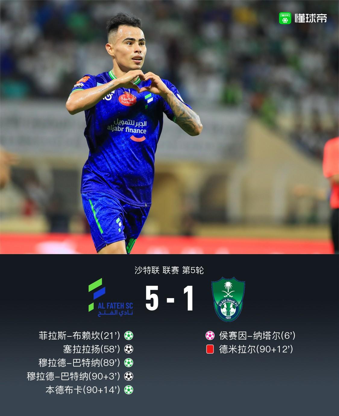 北京时间9月3日,哈萨征服在沙特联第5轮主场对阵吉达国民。吉达国民开场后凭借侯赛因-纳塔尔的乌龙球取得领先,但之后哈萨征服凭借菲拉斯-布赖坎和塞拉拉扬的进球实现反超。比赛尾声阶段,穆拉德-巴特纳上演梅开二度,本德布卡也点球破门,德米拉尔则被红牌罚下。最终哈萨征服主场5-1取胜,首发八名外援的吉达国民则终结了联赛全胜。