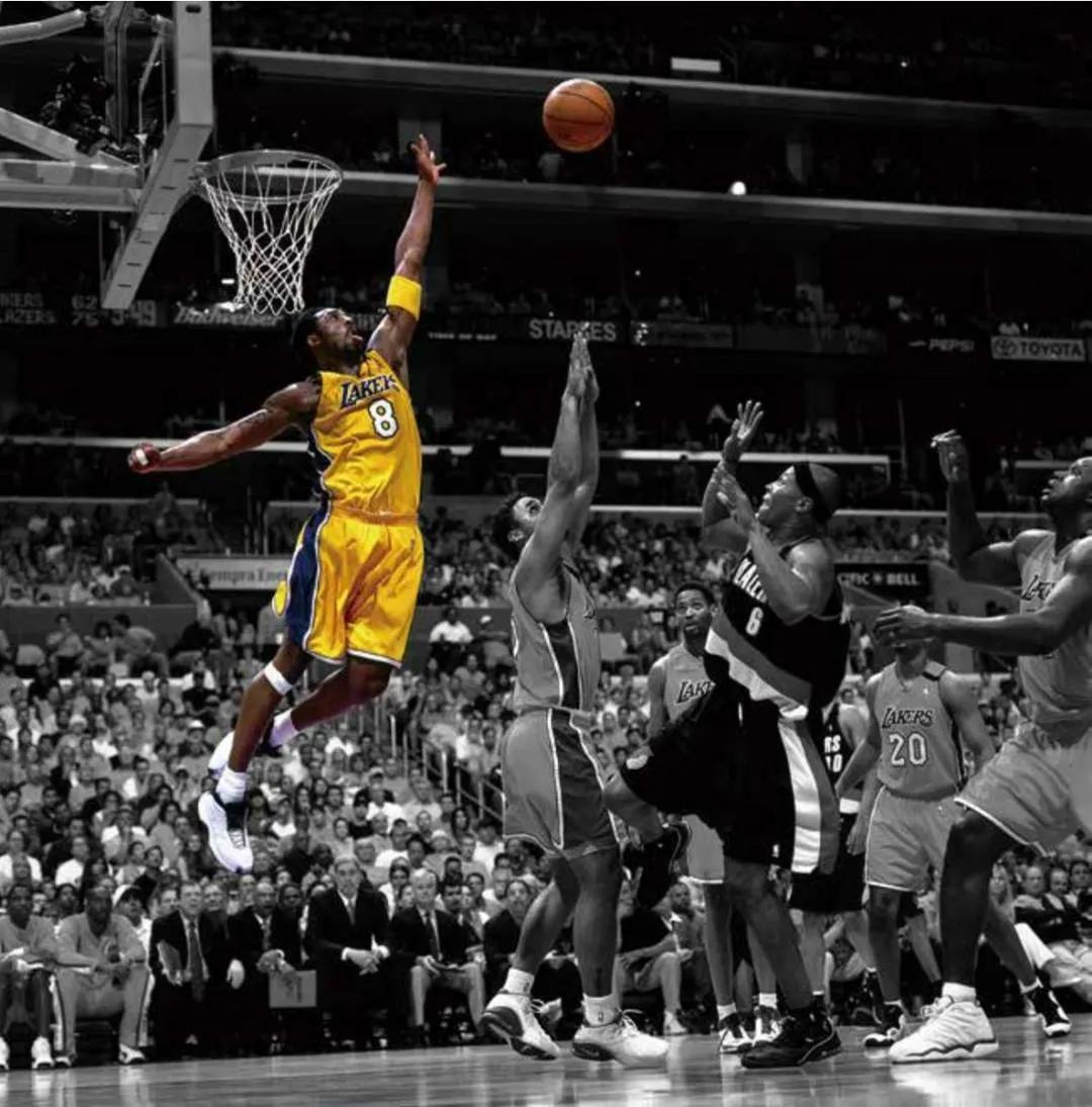 科比领衔外围们开始攻击:他们觑准了开拓者对“鲨鱼”的疯狂包夹留出的空间,他们知道开拓者不会允许“鲨鱼”在篮下接球,因此只能从外部击破之。科比在此时,初显他后来的巨星资质:金鼓齐鸣、磨牙吮血的时节,常人汗出如浆,奔避不迭,而巨星却越挫越勇。第四节开始,斯蒂夫·史密斯投篮,科比飞起,左手将球盖下。另一端,肖射中远射:还差10分。