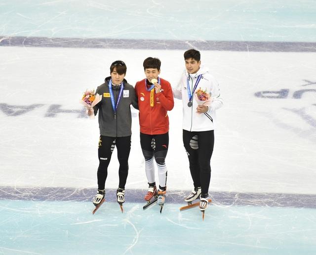 获得男子1000米前三名的选手,左起:韩国选手朴继元、中国选手韩天宇、匈牙利选手刘少昂。中国青年报·中国青年网记者 慈鑫/摄