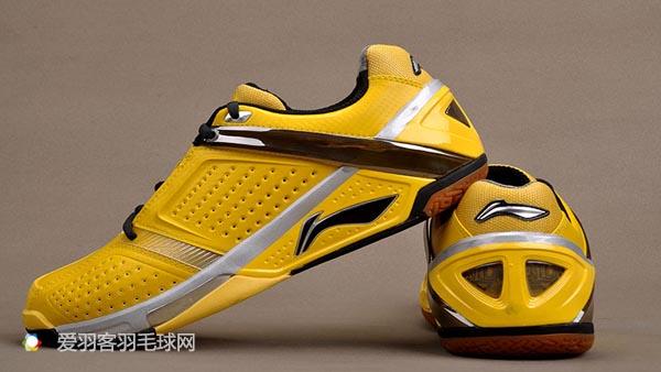 这双球鞋属于鞋底加厚、鞋楦加宽的款式,在鞋跟部搭载了新一代的三层式动力垫,不同密度的动力垫能让厚中底在发挥更优秀缓冲性能的同时,保持足跟在中底变形时的稳定性。同样,球鞋的鞋帮有所加强,脚踝处也有支撑性更强的保护设计。这是一如既往的林丹式球鞋,非常强调稳定和脚踝的支撑性,并不重视轻量性和快速移动、起动的性能。