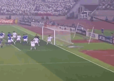 年代有些久远,或许很多人的记忆都有了偏差,感觉是黎兵进了两个球,但实际上,第一个球,是他压制中山雅史,造了一个乌龙;第二个球,不是他擅长的头球,而是侧身倒钩。