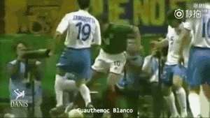 双脚夹球跳跃过人,这就是“布兰科蛙跳”。布兰科最早上演这个神技是在1998年世界杯墨西哥对阵韩国的比赛中,这次灵光也让他一战成名。