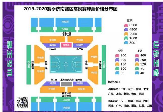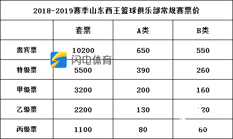 山东男篮新赛季常规赛票价出炉,最低票价为60元。而最贵的贵宾票套票价格过万,为10200元。