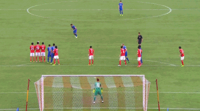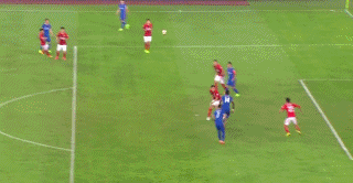 第34分钟,实力更胜一筹的恒大依靠球员的个人能力打破僵局,于汉超与高拉特在禁区前沿打出配合,于汉超一脚弧线球直挂死角,邓小飞对此球毫无办法。当代力帆0:1落后。