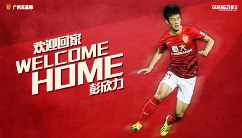 前恒大球员彭欣力重返天河体育场,恒大俱乐部也在微博上发布了“欢迎回家”的海报。