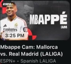 ESPN+的副总裁曼努埃尔-德-拉费解释说:“这次的直播将用一台摄像机全程追踪姆巴佩。我们会展示他所有的跑动、情感...无论他在场上去哪,我们都会紧跟其后。”