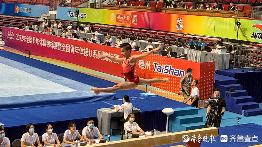 7月21日下午3时,2022年全国青年体操锦标赛女子资格赛暨团体决赛(U15组)在德州市体育馆准时举行。女子团体赛设置自由体操、高低杠、平衡木、跳马四个项目,其中女子U15共有浙江、湖北、山东等七支代表队参赛,选手经过热身、场地练习后,依次上场比赛。