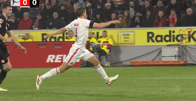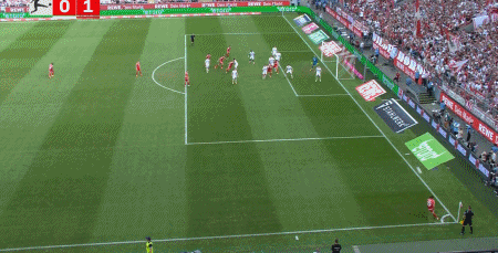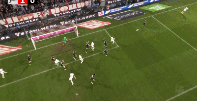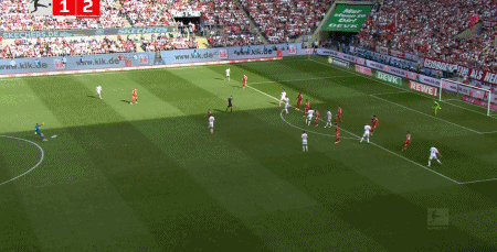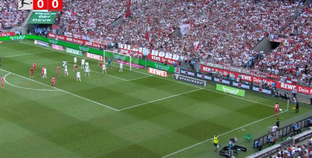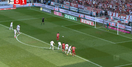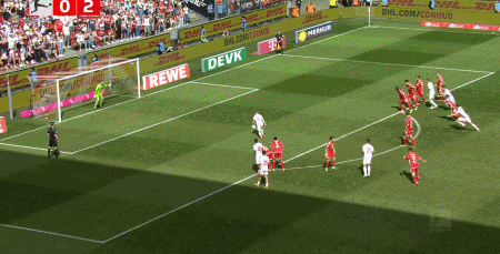 第45分钟,赫迪拉送点,凯因茨主罚命中,科隆1-2柏林联合