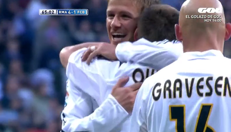 这场比赛,罗纳尔多1传1射,贝克汉姆2次助攻,齐达内、劳尔、欧文各进1球,卡洛斯送出1次助攻,皇马首发的六大巨星全部参与进行,菲戈则替补出场,皇马七星全部参加了这场比赛!