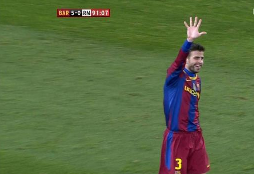由于佩莱格里尼执教成绩不佳,弗洛伦蒂诺在10-11赛季将狂人穆里尼奥招致麾下,皇马也在赛季初取得了联赛7连胜的战绩,不过第13轮客场面对巴塞罗那,皇马毫无招架之力,在诺坎普5球完败,拉莫斯最后时刻的红牌以及皮克的5根手指至今人难忘。好在那个赛季皇马在国王杯决赛1-0战胜巴萨夺冠,也算挽回了颜面。