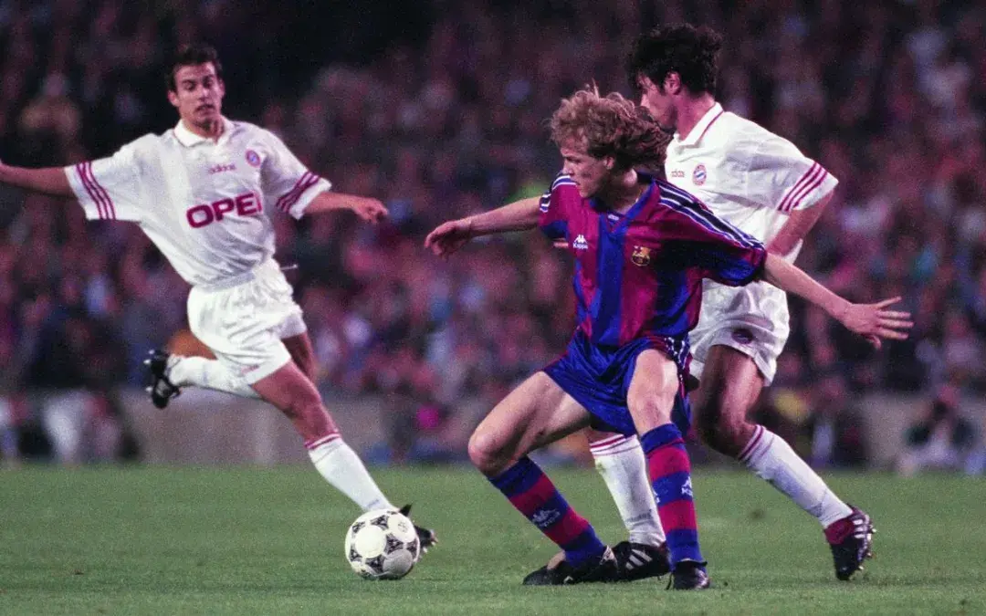 巴萨与拜仁的首次正式交锋是在95/96赛季的欧洲联盟杯半决赛的赛场。首回合中双方2:2打成平手。虽然在第二回合回到主场的巴萨1:2惜败,但由克鲁伊夫点燃的红蓝火种正以最猛烈的趋势野蛮生长。