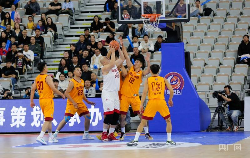 鄂尔多斯多名球员(橙色队服)防守呼和浩特队主力球员(央广网见习记者 杨亚东 摄)
