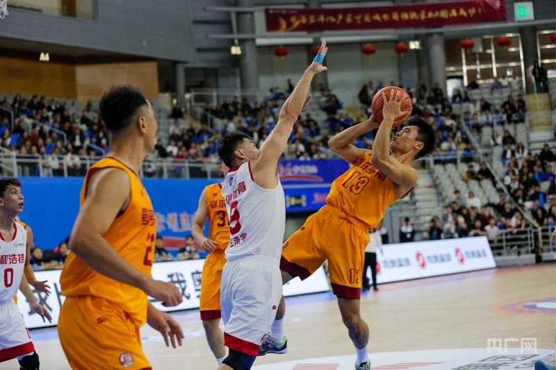 呼和浩特队球员突破上篮(央广网见习记者 杨亚东 摄)