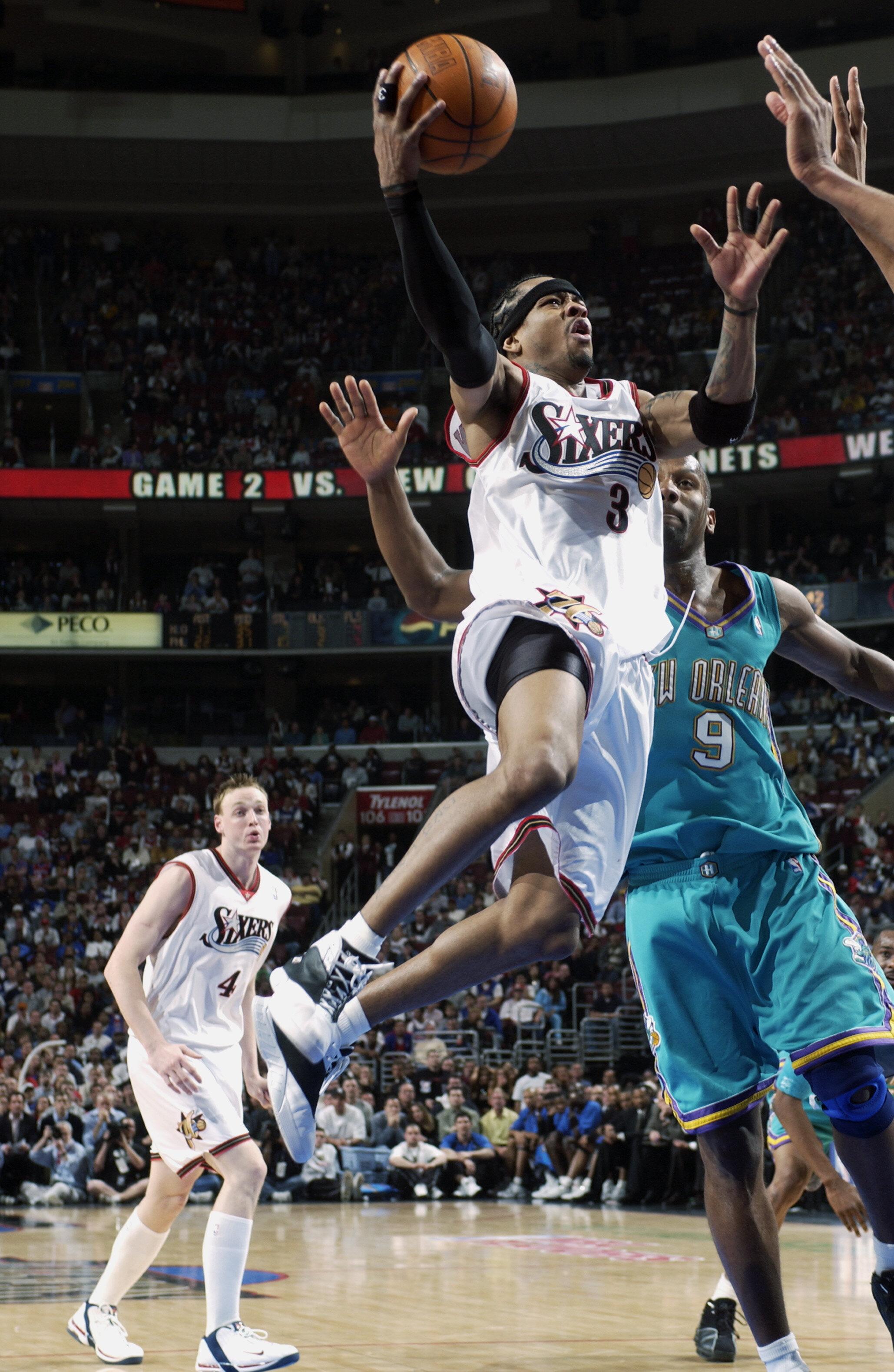 在艾弗森之前,联盟历史上只有乔丹、张伯伦、贝勒、巴克利和里克·巴里能在季后赛砍下至少55分。在02-03赛季面对黄蜂的系列赛,艾弗森成为第六个达成此项成就的球员。他首节就揽下20分,全场55分帮助球队赢得该场比赛。