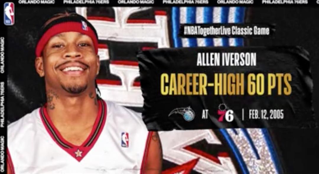 北京时间2005年2月13日,艾弗森在对阵魔术的比赛中,36投17中,砍下职业生涯单场最高的60分,并最终率领球队战胜魔术,收获了本次比赛的胜利。