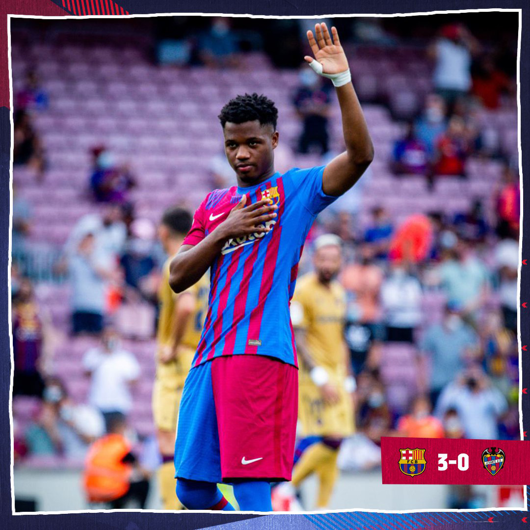 比赛第90分钟,替补登场的法蒂的远射破门!时隔323天重回赛场的法蒂,打入了自己身穿10号球衣后的第一粒进球!巴萨3-0莱万特!