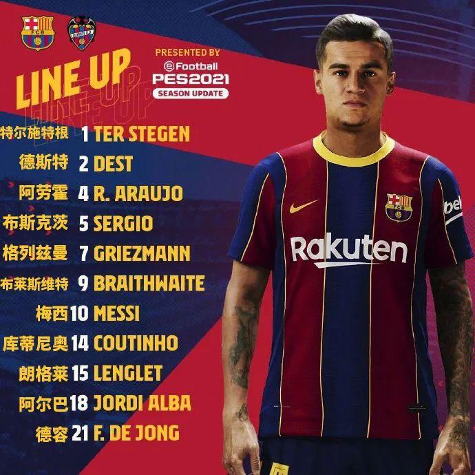 中场:5-布斯克茨(58' 16-佩德里),14-库蒂尼奥(70' 17-特林康),21-德容