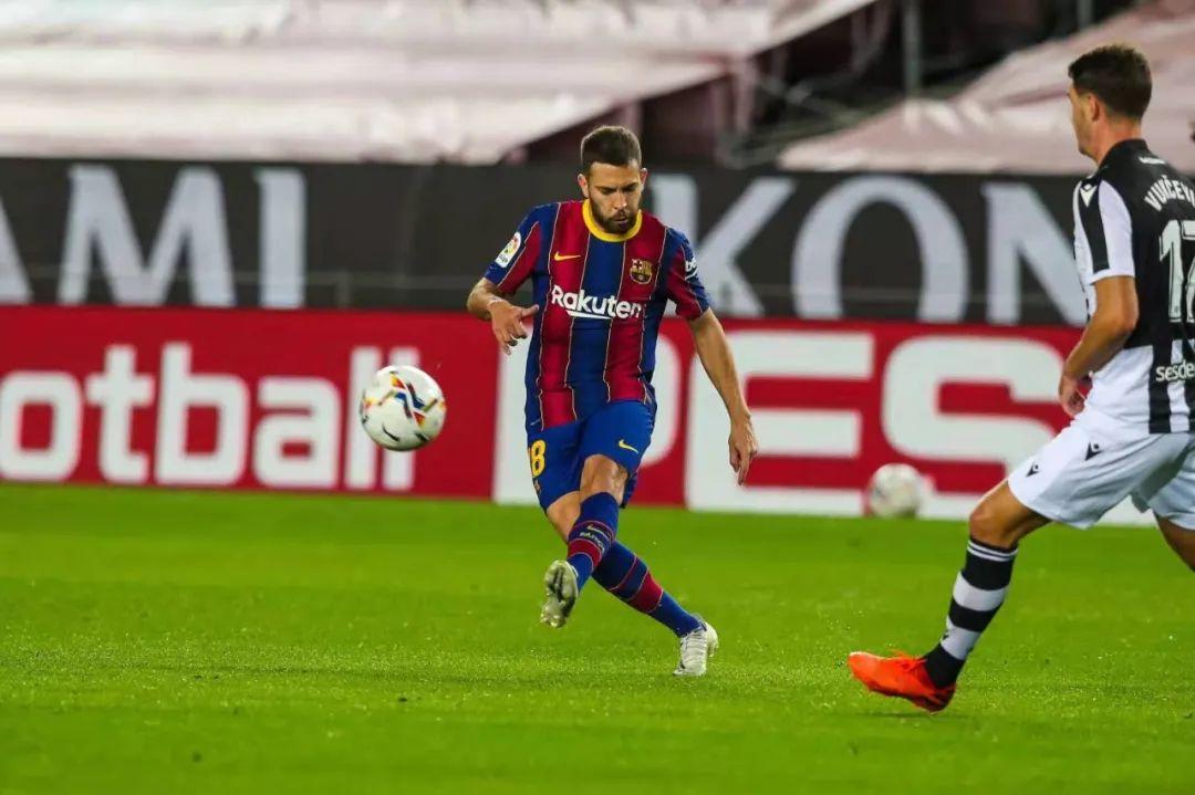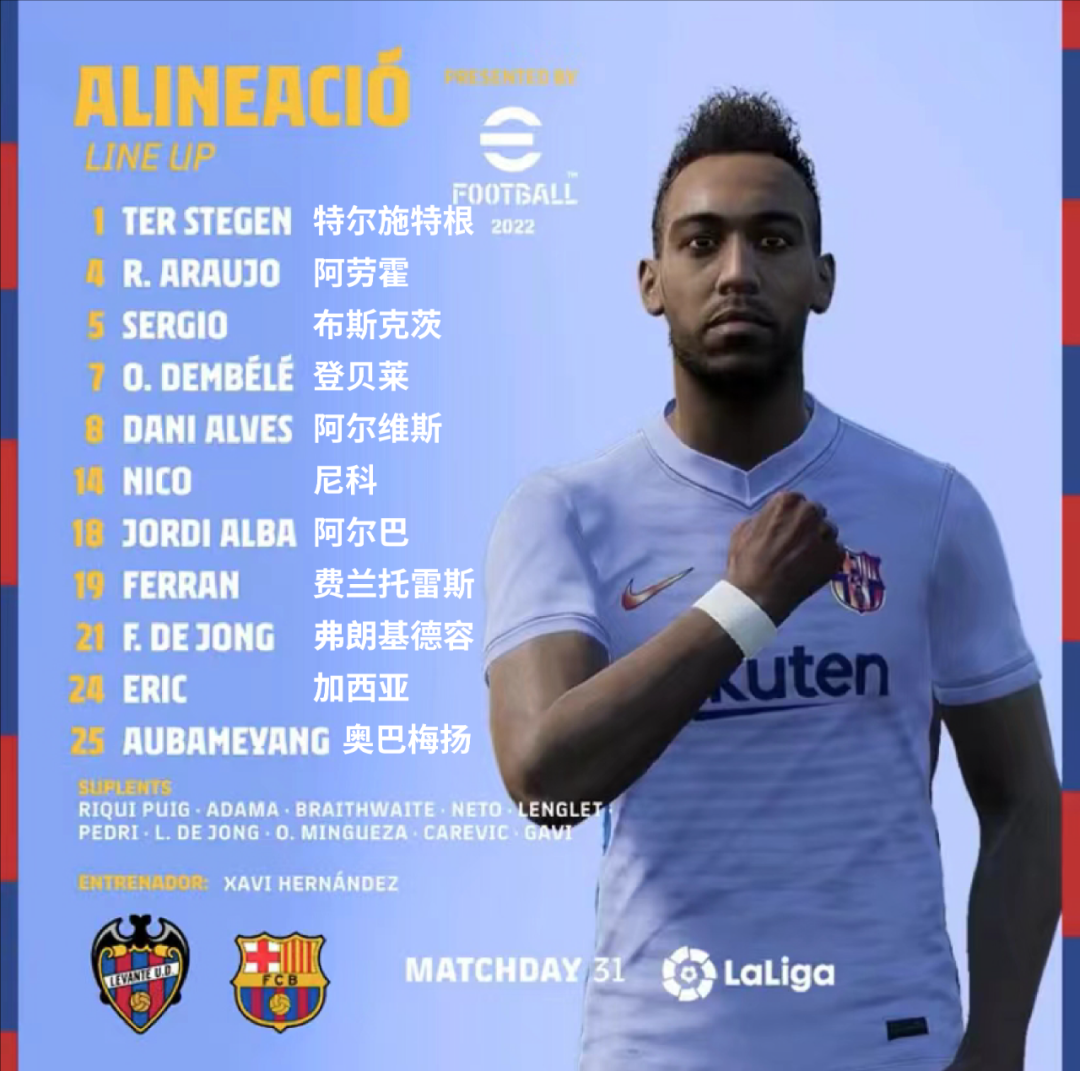 后卫:4-阿劳霍,8-阿尔维斯(81'15-朗格莱),18-阿尔巴,24-加西亚