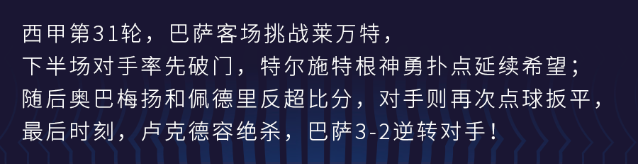 最终,巴萨客场3-2赢下莱万特,继续排名积分榜第二。