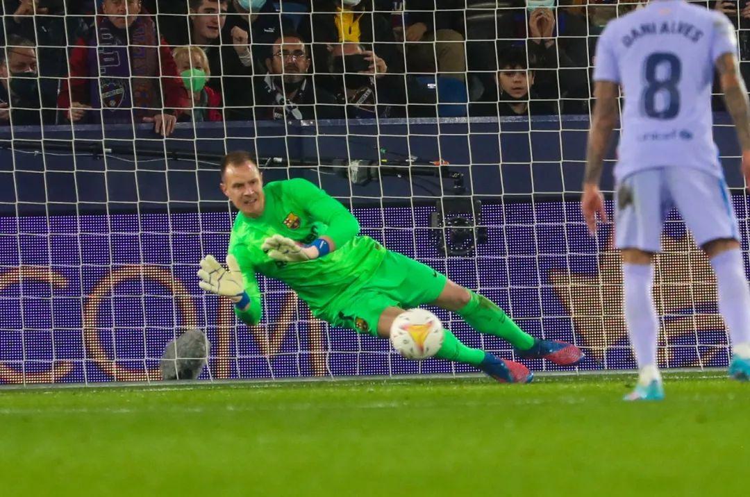 比赛第54分钟,对手再次获得点球,但特尔施特根神勇地将球扑出!