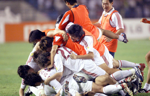 在34分钟,国足赢得了角球机会,王永珀开出角球找到于大宝,后者俯身顶球,哨响得分!此后,中国队开始稳守,一路顽强地守到了完场,多少球迷在那一天激动得难合眼,这可是在12强赛这种级别的赛事战胜了韩国队。