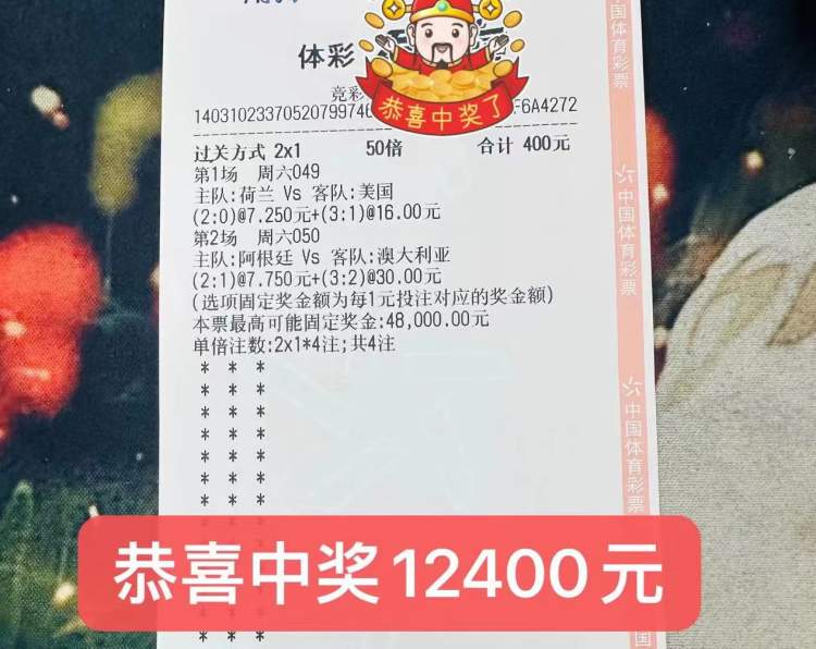 据这位彩民透露,他觉得到了淘汰赛阶段,冷门结果就很难出了,所以都倾向于主胜,“阿根廷第一场输给了沙特,感觉这一场能赢球,但也很难大比分胜出,所以选了2:1和3:2。”
