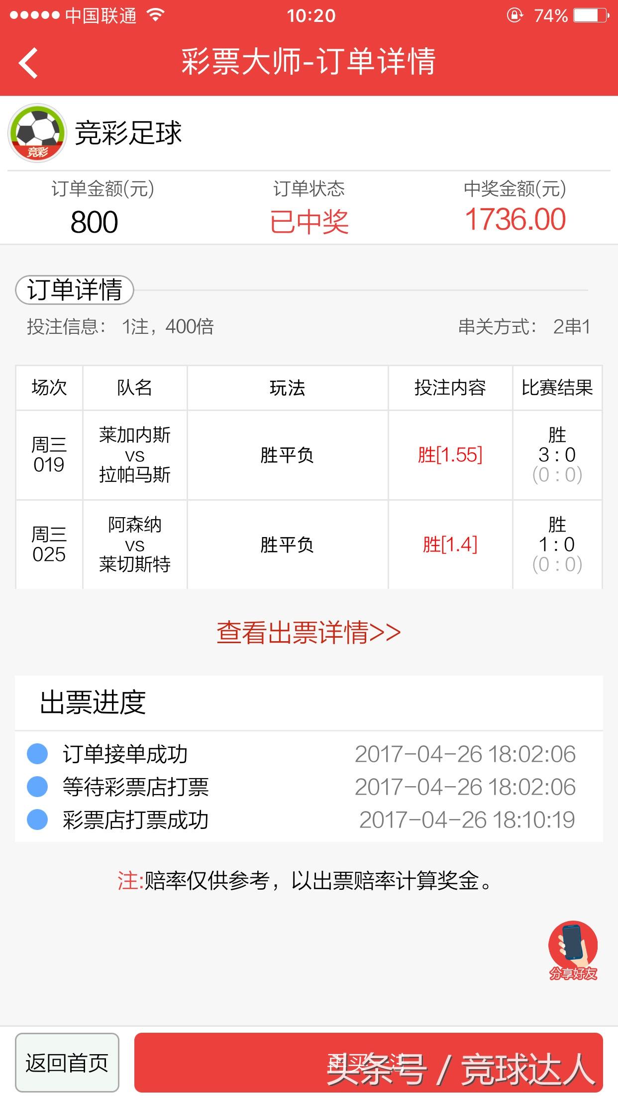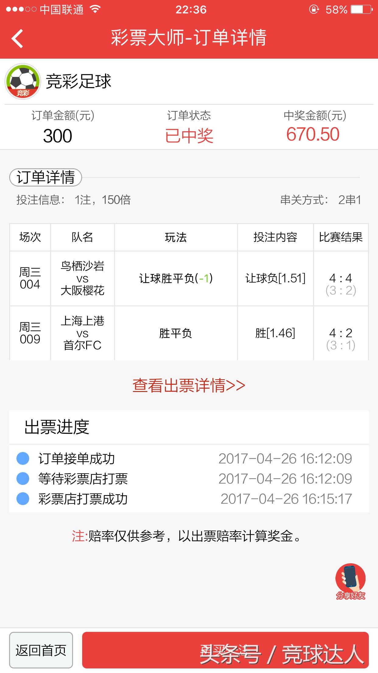 昨晚发布的亚冠抗日300元实单及头条公推的800元实单稳稳命中,上港就是非常给力,莱加内斯敢让一球盘我也敢买。因为每日文章数量有限所以推荐无法全部发布,还请多多关注彩票大师竞球达人直播间,锦囊需付费,头条上每周一至周五都会有免费发布,竞球达人是今日头条官方加V认证的头条号,文章下方评论及广告还请大家不要相信,以免造成不必要的损失。如果有交流小编会尽快第一时间一一回复大家,最近竞球达人团队是越办越好,也是遭来了不少的麻烦,实单内容仅供参考,还请红黑勿怪!